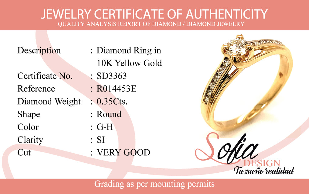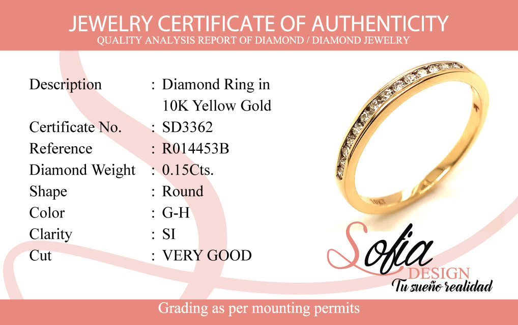 (SOFIA) Set de anillos de matrimonio con diamantes en oro amarillo 10kt.