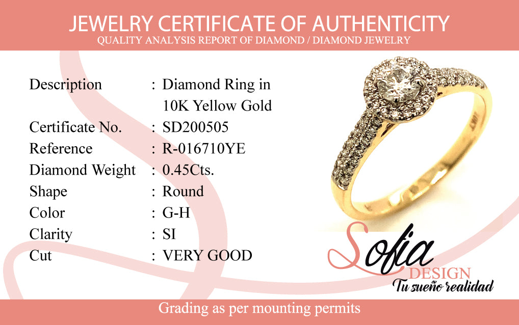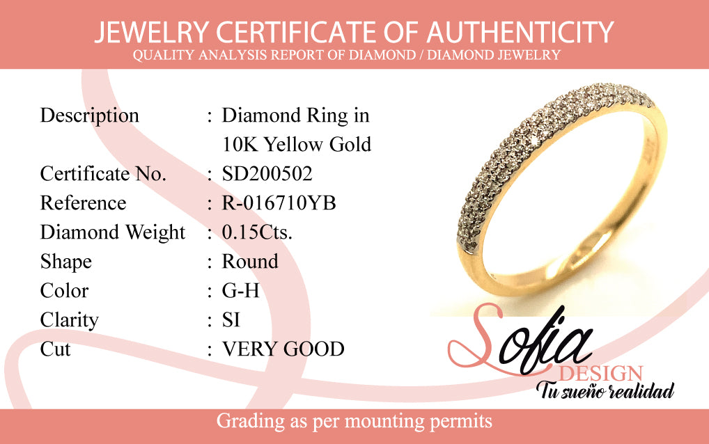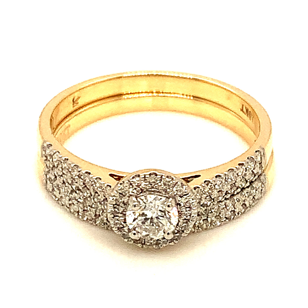 (SOFIA) Set de anillos de matrimonio con diamantes en oro amarillo 10kt.