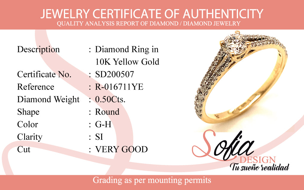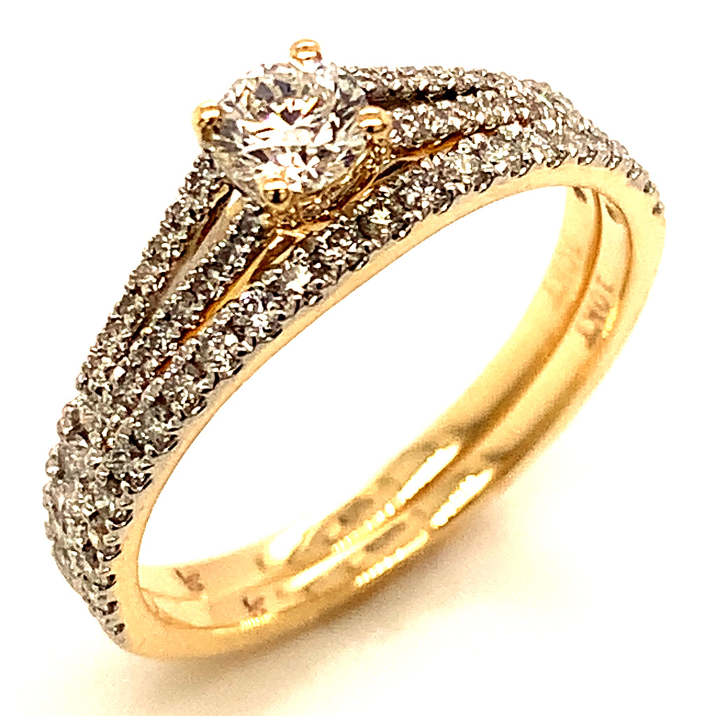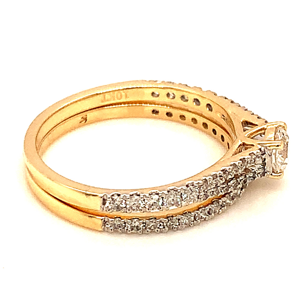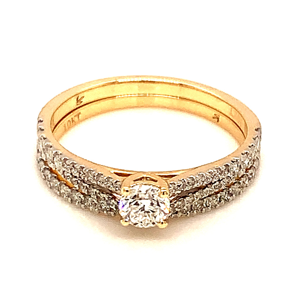 (SOFIA) Set de anillos de matrimonio con diamantes en oro amarillo 10kt.